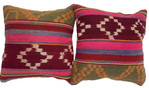 Cojines fabricados a mano en lana de oveja y alpaca. Cada diseño es único y sus motivos aluden a la zona geográfica y cultural donde fueron hechos.
